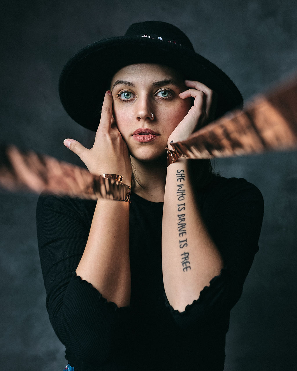 Dickinson had two lights on hand and varied her setup depending on what look she was wanting to create for each portrait. One setup consisted of (1) Einstein Flash Unit modified with a 51″ Soft Silver PLM Umbrella and the 51″ White Front Diffusion Fabric. Her second setup included (1) Einstein Flash Unit modified with the 24″ Silver Foldable Beauty Dish.