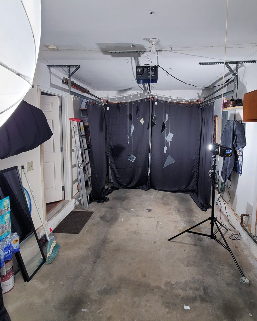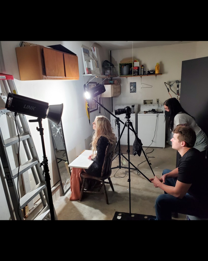 Laura Ashley (who may remember from the faux rain in the studio video) was gearing up to release her debut single, ‘Fight a Memory,’ and needed both single art and a music video shot. Kimberly came up with the concept, filmed, and edited the video, Anthony supplied his garage and shot the photos, and with about $60 in materials (along with some help from Laura’s fiancé, Jordan, and the fabulous hair and makeup artist Nissi), we were able to film three distinct looks in a small space and photograph the single art!