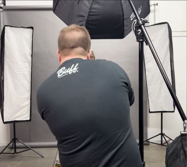 For the next setup, Kyle swaps the small stripbox back to the 35″ Octabox, and keeps the remaining lights unaltered.