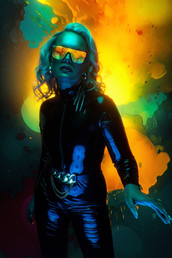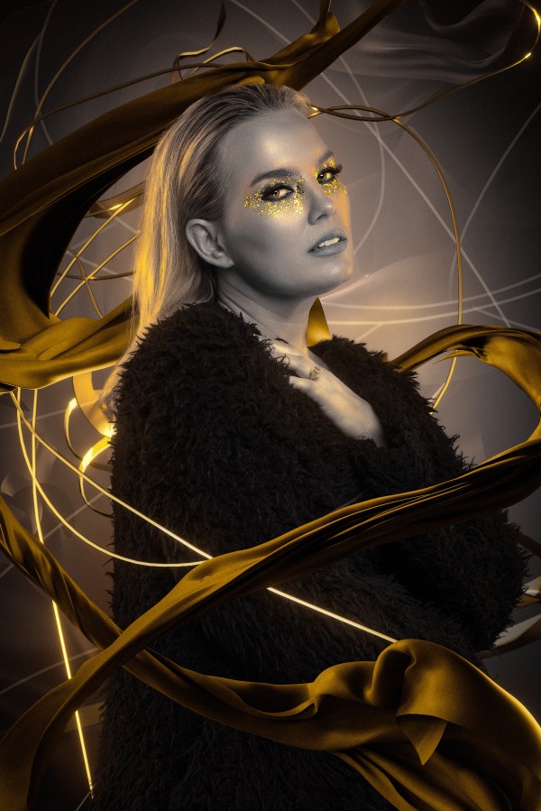 Ryan used three Celestials and two Links in total. For the rim lights with the Links, he used 2 14″ x 60″ Foldable Stripboxes. For the key light he used a 35″ Octabox, a 24″ Silver Interior Beauty Dish underneath the model, and a 7″ Reflector against the backdrop. He used Color Gel Domes to create the colors he created in the pre-visualization!